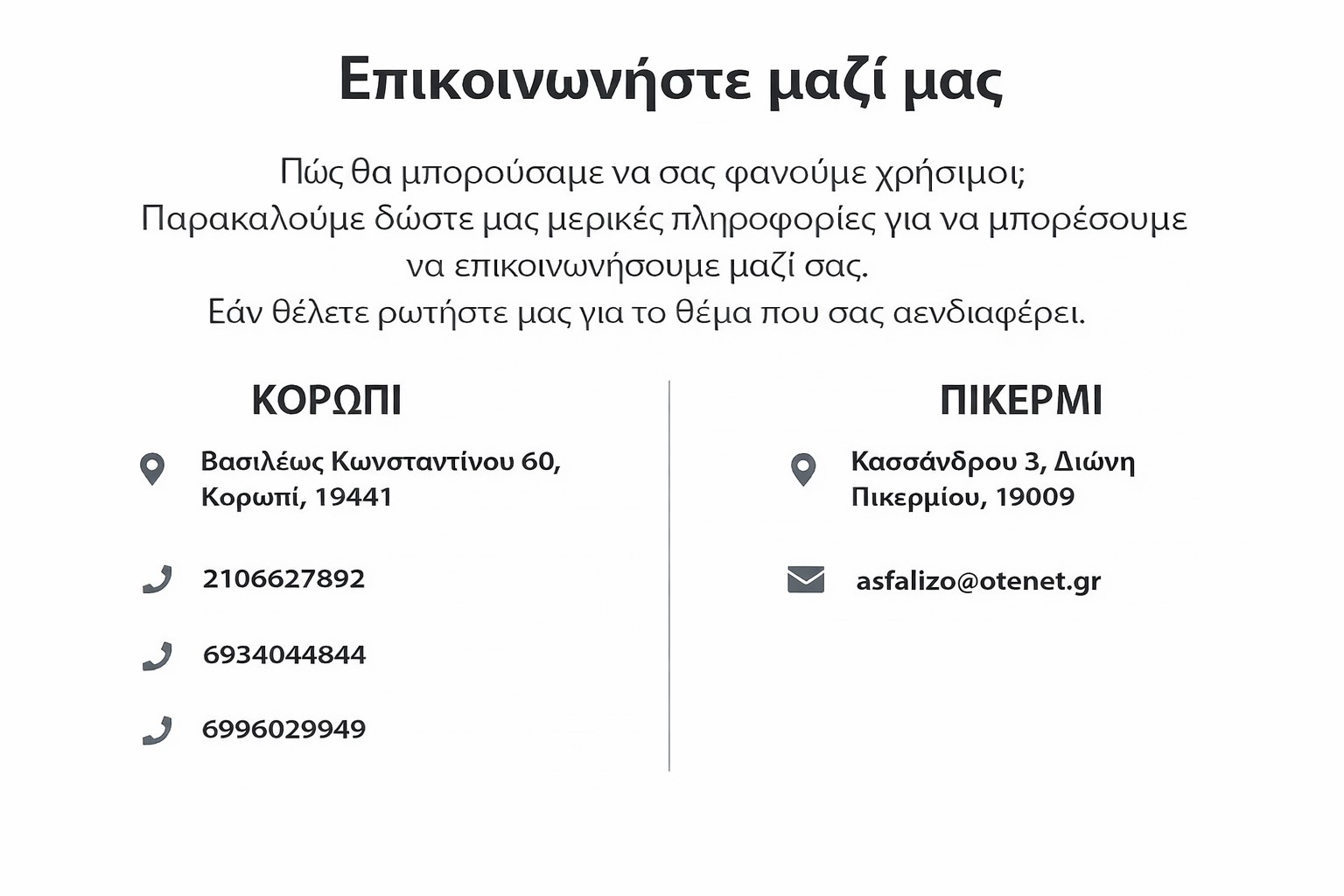 Τα προσωπικά δεδομένα σας που συλλέγουμε είναι το ονοματεπώνυμό σας, η διεύθυνσή σας, τα τηλέφωνά σας, τα email σας, τα στοιχεία του αυτοκινήτου σας εάν πρόκειται για ασφάλιση οχήματος, τα στοιχεία του ιατρικού ιστορικού σας εάν πρόκειται για την ασφάλιση της υγείας σας & γενικότερα επεξεργαζόμαστε με την άδειά σας, αφού αυτόβουλα & ελεύθερα μας τα γνωρίσατε, προκειμένου να χρησιμοποιηθούν για την κατάρτιση της ασφαλιστικής σας σύμβαση με την ασφαλιστική εταιρεία που επιλέξατε και μόνο γι’ αυτόν τον σκοπό.